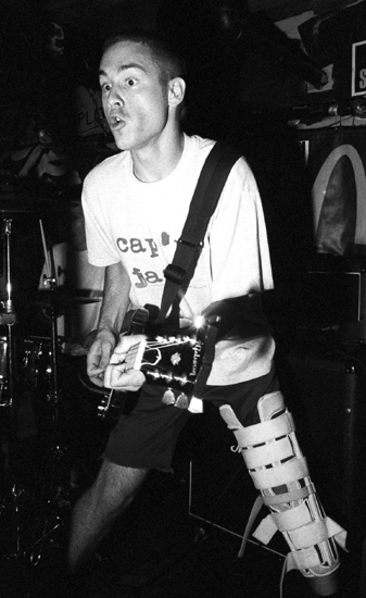 kevin j. frank - a case study here are two photos of Kevin J. Frank, one of my favourite guitarists, shot eight years apart. i scanned these shots for the next issue of Copper Press, but dude who is doing the design of that article already has live pix and doesn't need mine. to keep these from going to waste and to justify the time spent scanning them, here you go.